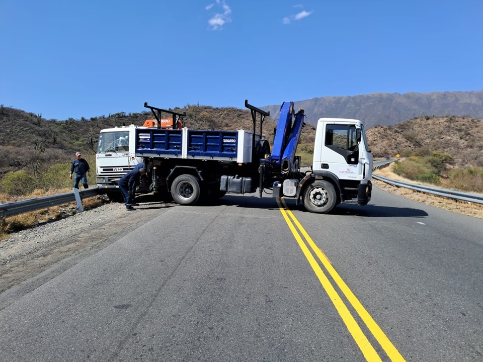 Vialidad Nacional informa que se debe transitar con suma precaución por Ruta Nacional 38, en la Cuestecilla de El Portezuelo, donde se produjo la colisión entre dos camiones y uno de ellos ocupa parte de la calzada.