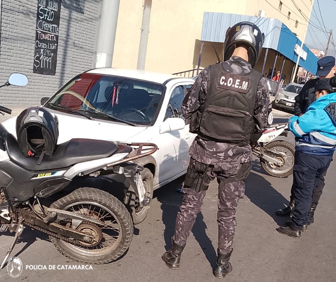 En la mañana de hoy, a las 07:00, motoristas del COEM-Kappa interceptaron un Chevrolet Corsa blanco en avenida Sal Gema y San Juan Apóstol.