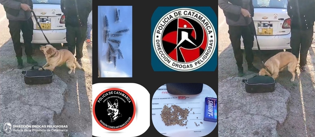 Al inspeccionar el rodado, la can “LIA” adiestrada para detectar estupefacientes, realizó una marcación en un bolso de colores negro y rojo, y al darle apertura, los policías secuestraron unas 497 semillas de la variedad Cannabis Sativa, que fueron puestas a disposición del Juzgado Federal, desde donde se impartieron las directivas a seguir.