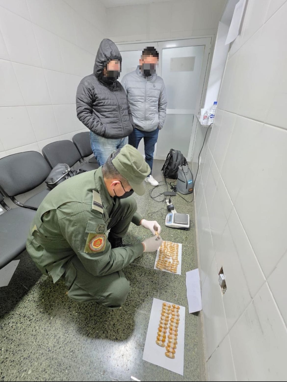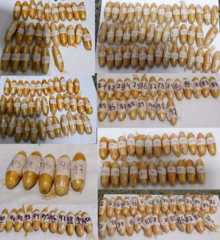 En el Centro de Salud Zenón J. Santillán, se realizaron radiografías que confirmaron la presencia de cuerpos extraños en sus estómagos. Con supervisión médica, se llevó a cabo la evacuación controlada de las 197 cápsulas, que sumaron un total de 2 kilos 244 gramos de cocaína.