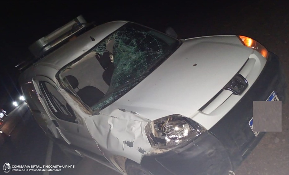 A las 21:30 de ayer miércoles, personal de la Comisaría de Tinogasta se hizo presente en la Ruta Nacional N° 60, a la altura del ingreso a la localidad de El Puesto, donde una camioneta Peugeot Partner, al mando de Carlos Mariano Reyes Sesto (25), embistió a un animal equino.
