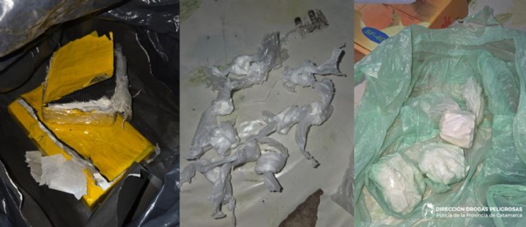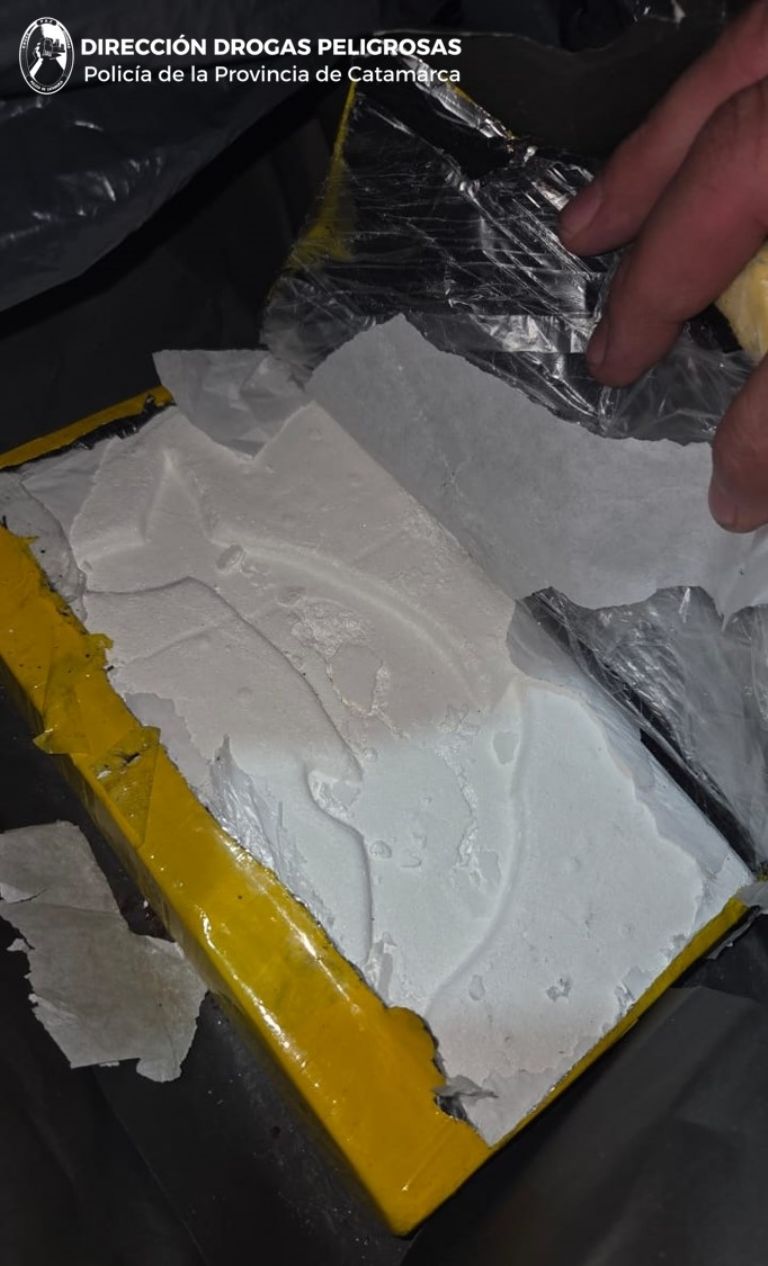 - 1,605 kg de cocaína, en dos trozos compactados y catorce envoltorios de polvo blanco.