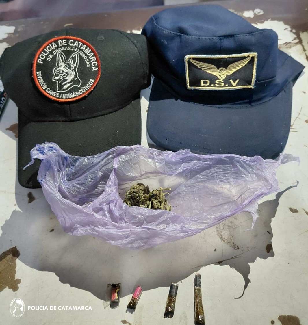 Al inspeccionar las pertenencias de uno de ellos, los policías encontraron un recipiente con una sustancia herbácea y cigarrillos de fabricación casera con la misma sustancia, que al ser sometida a la prueba de campo correspondiente determinaron que se trataría de Marihuana, que quedó en calidad de secuestro a disposición del Juzgado Federal, desde donde se indicaron las medidas a seguir.