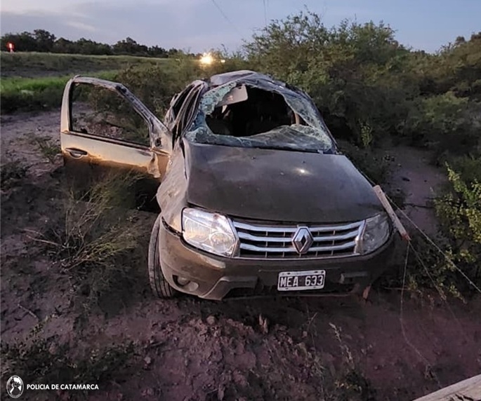 Hoy, a las 18:05, en el kilómetro N°1031 de la ruta Nacional N° 60, en el departamento Capayán, volcó un vehículo en el que se desplazaban cinco personas oriundas de Mar del Plata.