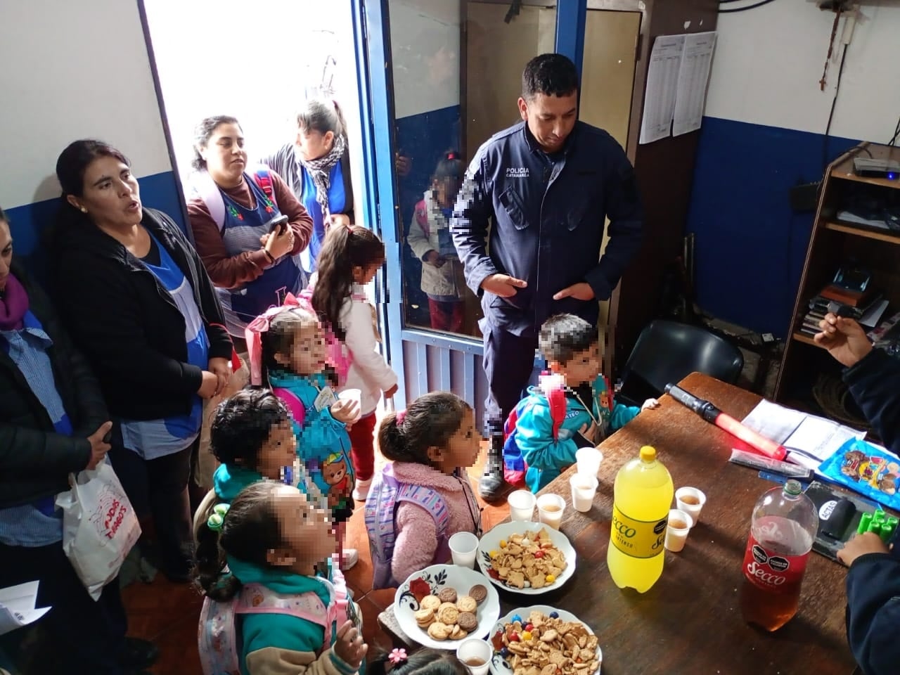 El encuentro tuvo lugar en la Comisaría de Aconquija, donde los niños de los Jardines El Alamito, Altos de Las Juntas y La Alumbrera llegaron acompañados por sus docentes para compartir un momento especial con el personal policial.