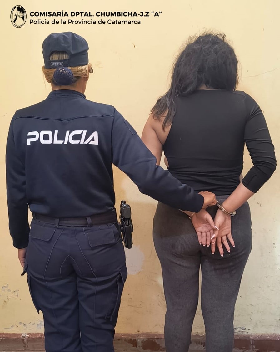 En la mañana de hoy, a las 06:30, numerarios de la Comisaría Departamental Chumbicha llegaron hasta la esquina de las calles 25 de Mayo y Maipú, de esa localidad del Departamento Capayán, donde aprehendieron a una joven de apellido Rojas (20), quien habría agredido físicamente a otra mujer, para luego arrojar puntapiés y golpes de puño al personal policial interviniente.