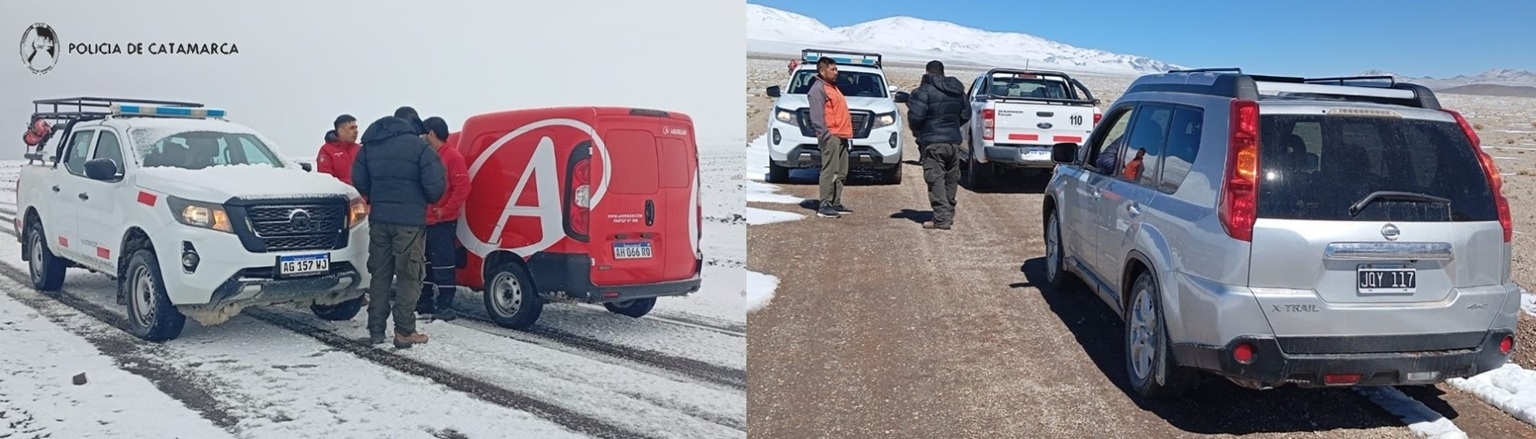 Durante la mañana de hoy, efectivos de la Subcomisaría El Peñón, departamento Antofagasta de la Sierra, tomaron conocimiento que en inmediaciones a la ruta provincial N° 43, dos hombres habrían quedado varados cuando circulaban en una camioneta Renault Kangoo.