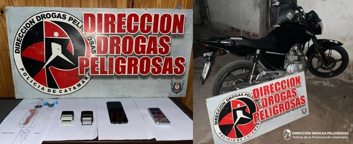 Al irrumpir en los domicilios, los investigadores lograron el secuestro de una motocicleta Honda CG 150 cc, tres teléfonos celulares y dos balanzas digitales tipo gramera.