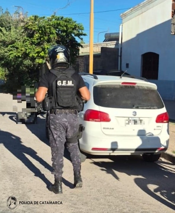 El procedimiento tuvo lugar alrededor de las 17:30 de este viernes, cuando personal del Grupo Especial Motorizado (GEM-Belén) llevaba adelante recorridos preventivos sobre avenida Coronel Daza, en el tramo comprendido entre calle Artaza y avenida Virgen de Belén.