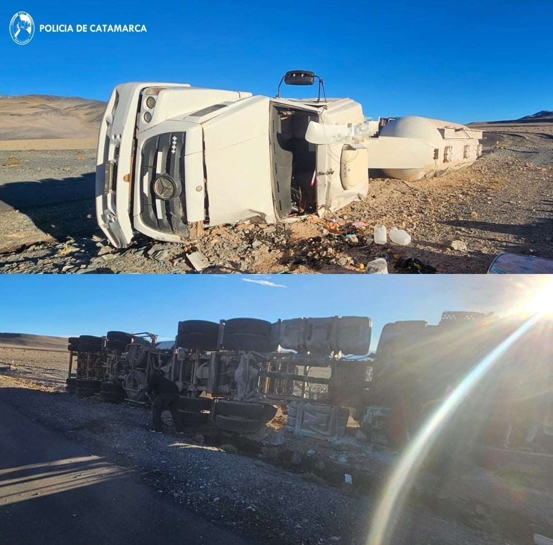 El hecho ocurrió alrededor de las 17:50 sobre la Ruta Provincial N° 43, a unos 12 kilómetros hacia el sur de la localidad de El Peñón. Por causas que aún son materia de investigación, el conductor de un camión Mercedes Benz, dominio LJX-121, identificado como Alberto Martín Alfaro (40), perdió el control del vehículo y terminó volcando a un costado de la banquina.