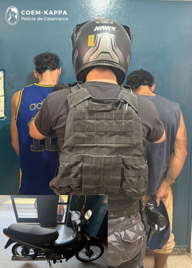 De inmediato se inició una persecución que finalizó en la esquina de las calles Joselín Cerdán Rodríguez y Gobernador Manuel Gutiérrez, con la aprehensión de dos hombres de apellidos Oliva (35) y Ruíz (37) y el secuestro del rodado en el que circulaban, ya que no supieron acreditar su legitima propiedad y procedencia.