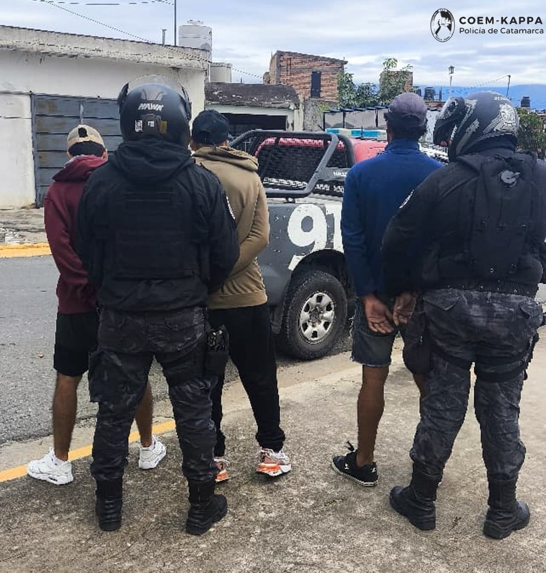 En el lugar, los uniformados procedieron a la detención de tres sujetos de apellidos Aragón (20), Rodríguez (26) y Bazán (32), quienes habrían incurrido en infracciones contempladas en el Código de Faltas de la Provincia.