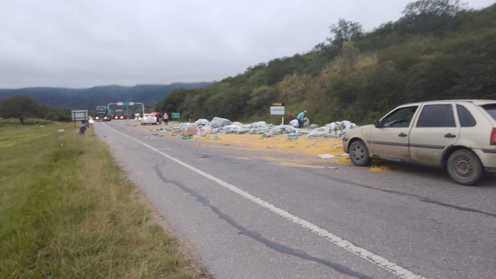 Según informó Vialidad Nacional, el hecho ocurrió en el kilómetro 629,800, en el carril descendente, donde parte de un camión involucrado permanece sobre la calzada. Además, una porción de la carga transportada cayó sobre la ruta, reduciendo el espacio de circulación y representando un riesgo para los conductores.