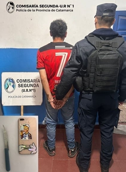 De inmediato y con las características brindadas, los uniformados ampliaron el recorrido por la zona y en la calle Buenos Aires, entre Santiago del Estero y avenida Hipólito Yrigoyen, aprehendieron al supuesto autor del ilícito, un hombre de apellido Martínez (31), a quien le encontraron entre sus pertenencias el aparato de comunicación sustraído y un cuchillo tipo tramontina.