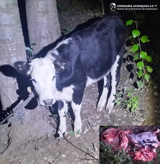 Anoche, a raíz de un llamado telefónico, efectivos de la Comisaría Aconquija tomaron conocimiento que en un domicilio ubicado en el barrio La Alumbrera, de esa localidad del Departamento Andalgalá, se estaría faenando un animal.