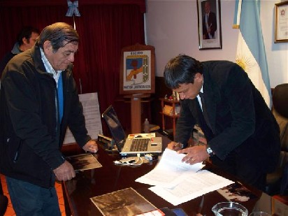 Santa María - En la mañana de hoy, en la Intendencia de la Municipalidad de Santa María, el jefe comunal Jorge Andersch firmó el Contrato de Locación para la realización de Obras complementarias Red de agua y cloacas previas a la Pavimentación de calle 25 de Mayo.