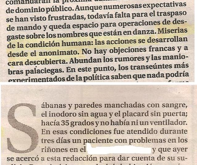Y no es que debía ocultarse la información, todo lo contrario; si es que realmente ocurrió ese hecho, El Ancasti debió mencionar al autor de la denuncia, y si hubiera preferido preservar su fuente, mencionar al menos datos como el piso, la habitación donde ocurrió y la identidad del profesional que “tan mal” estaba haciendo quedar a ese sanatorio.