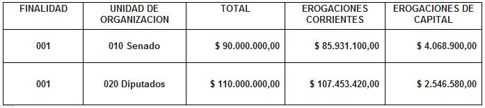 También obtuvo sanción definitiva, con el acuerdo total del cuerpo, el Presupuesto del Poder Legislativo para el Ejercicio 2012, quedando establecido, mediante Ley Nº 5352, en $200.000.000,00, discriminándose para la Cámara de Senadores $90.000.000,00 y para la Cámara de Diputados $110.000.000,00.