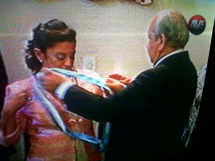 Luego de concretado el traspaso, los presentes comenzaron a entonar la Marcha Peronista, que debió ser escuchado por el ex mandatario y los ex funcionarios del FCS que estuvieron en el Salón de Actos de Casa de Gobierrno.