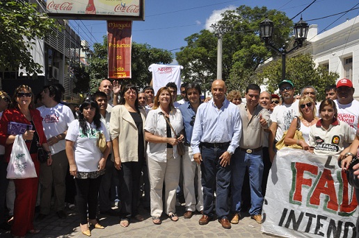 A lo largo de la peatonal Rivadavia, se desplegó todo el colorido y la batucada de dirigentes y militantes del Frente Cívico y Social que con cánticos acompañaron a los candidatos.