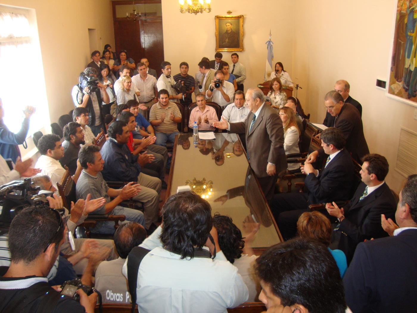 Tras la reunión en Casa de Gobierno y luego de escuchar la noticia, los trabajadores se trasladaron a la Catedral Basílica (Ver Catamarcactual TV), donde agradecieron a la Virgen del Valle por la protección y el acompañamiento en el reclamo. Luego, permanecieron unos minutos frente a la sede el Poder Ejecutivo donde expresaron su beneplácito por el decreto gubernamental y hasta ovacionaron al gobernador, quien en determinado momento se asomó por el balcón.