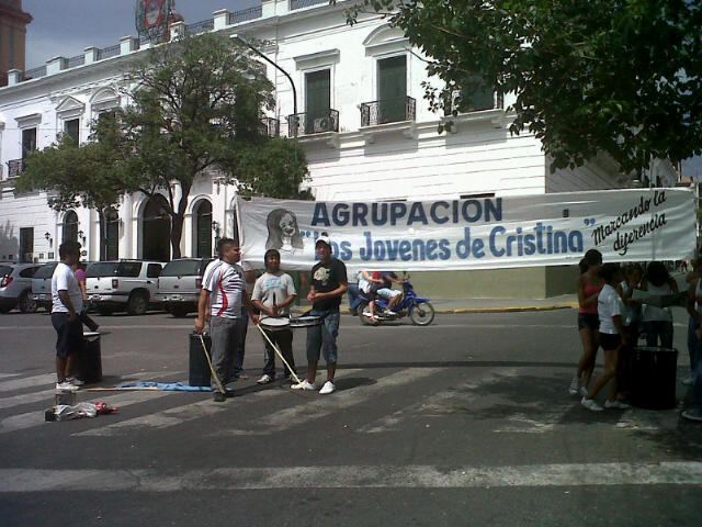 Un grupo de 25 jóvenes militantes de la agrupación \"Los jóvenes de Cristina\" se presentaron hace instantes frente a Casa de Gobierno, donde llevaron a cabo una bulliciosa protesta en busca de respuestas por el trabajo prometido por las actuales autoridades, según dijeron.