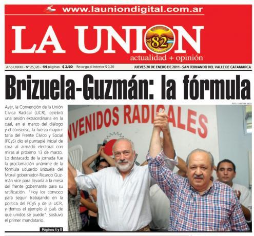 Luego de esa votación, casi teatralmente, Brizuela y Guzmán ingresaron al salón donde se realizó la Convención, en medio de cánticos y aplausos. Allí agradecieron el apoyo unánime de todas las líneas que integran el radicalismo en la provincia, apoyo que luego se fue diluyendo, tanto que el 13 de marzo se perdió la elección, el 23 de octubre prácticamente se tocó fondo y hoy día cava un subsuelo.