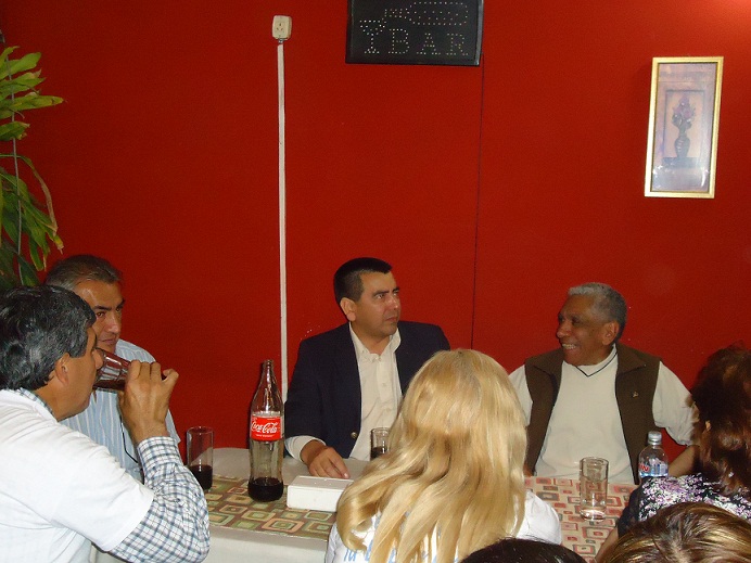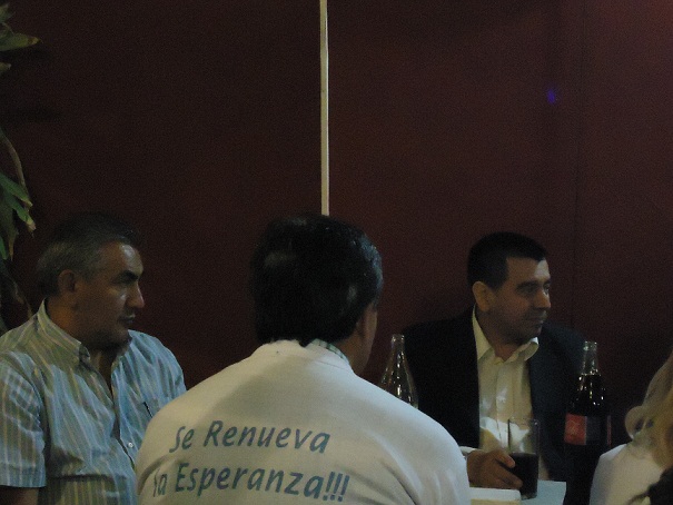 El funcionario llegó y se sentó en una de las puntas junto a militantes de Pomán, de donde él era intendente hasta hace muy poco tiempo, antes de llegar a ser ministro del gabinete de Corpacci.