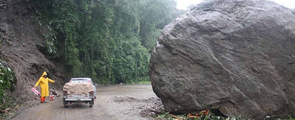 "La piedra en sí, no afecta demasiado la circulación. El problema es que, al desprenderse, rompió el muro de sostenimiento que estaba en la ladera y eso dificulta el tráfico; ahora estamos construyendo un nuevo muro", explicó el titular de la repartición, Raúl Basilio.