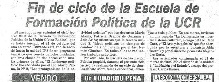 Un lector de Catamarcactual nos hizo llegar un recorte del diario siempre oficialista, El Ancasti, casi un Billiken de la historiografía catamarqueña, del año 2004, donde aparece una publicación sobre el cierre de actividades de la Escuela de Formación Política de la UCR.