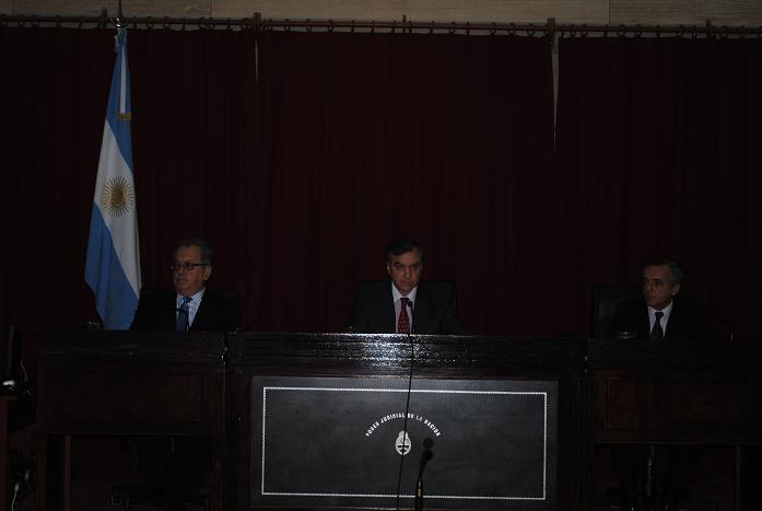El Tribunal es presidido por el camarista catamarqueño, Dr. Juan Carlos Reynaga, e integrado además por los doctores Gabriel Eduardo Casas y José Camilo Quiroga Uriburu, quienes tienen como juez sustituto al Dr. Carlos Enrique Ignacio Jiménez Montilla. Como fiscales actúan los doctores Santos Edgardo Reynoso y Víctor Manuel Monti. Los inculpados son asistidos por el Dr. Lucio Montero; en tanto que la querella es encabezada por el Dr. Guillermo Díaz Martínez, actual director de Derechos Humanos de la provincia.