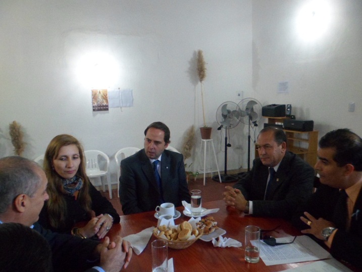 En estos momentos, comparten un desayuno, en la Secretaria de Producción y Desarrollo. con el intendente Alfredo Hoffman, para luego partir a la Escuela N° 266 Dr. Félix Nazar.