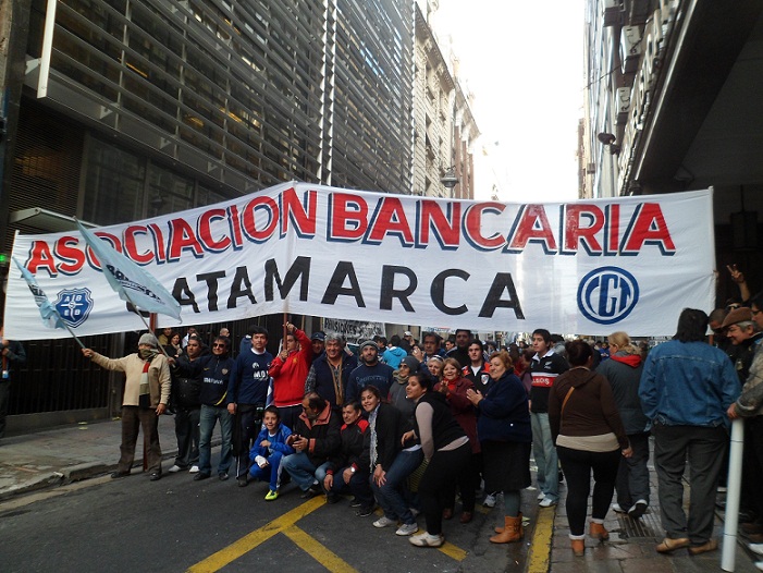 A pesar que no fue anunciado un paro bancario en nuestra provincia, desde la Asociación Bancaria de Catamarca ya habían anunciado su presencia en la Capital Federal para participar de la movilización que fue convocada por el líder de la CGT nacional, Hugo Moyano.