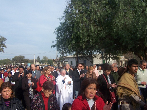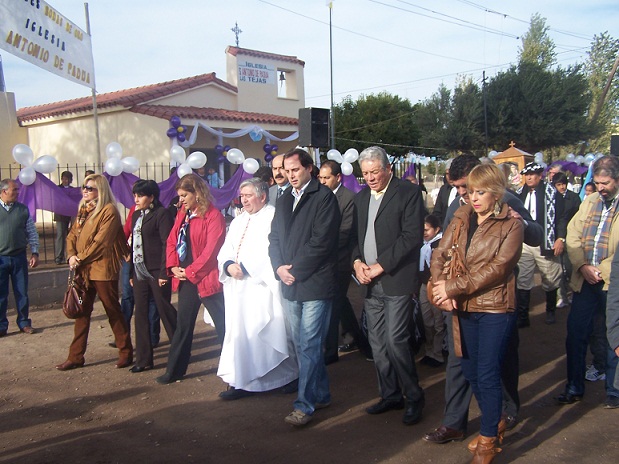 En la oportunidad, el vicegobernador camino junto a las demás autoridades y vecinos presentes en una procesión por el pueblo por los 50 años de la iglesia.