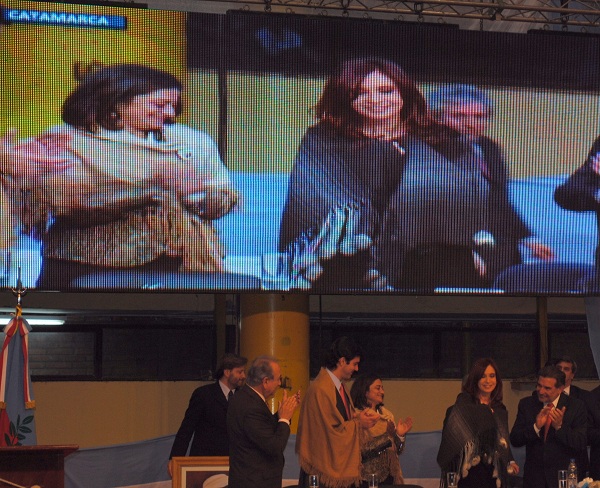“Y en esa tarea estuvieron los dos, Néstor y Ud. presidenta, quienes nos hicieron sentir nuevamente el orgullo de ser argentinos y latinoamericanos”, enfatizó la gobernadora, destacando que “los habitantes del interior, como nosotros los catamarqueños, tenemos un profundo reconocimiento y gratitud hacia Uds., por todas las obras que nos permitieron concretar”. Así enumeró las distintas obras para Catamarca financiadas con fondos nacionales, citando diversas rutas, el dique El Bolsón, las 8 mil viviendas del período anterior, las nuevas 1.200 casas y las 2.000 soluciones habitacionales, como también la inclusión laboral de 1.500 catamarqueños a través del programa Argentina Trabaja.