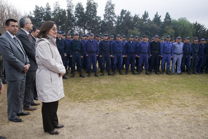La Gobernadora Lucía Corpacci, acompañada por el ministro de Gobierno Francisco Gordillo, el subsecretario de Seguridad Juan Pablo Morales y el jefe de Policía, Juan Palomeque, visitó ayer a los cadetes que están completando su preparación como aspirantes a integrarse a las fuerzas de seguridad de la Provincia.