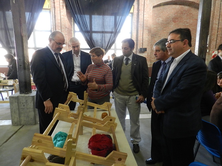 Acompañado por los subsecretarios de Promoción del Sector Social de la Economía, Federico Ludueña y de Fiscalización del Trabajo y de Seguridad Social, Guillermo Alonso Navone, Tomada se interesó por la técnica del hilado, y observó todo el proceso del tejido hasta terminar de confeccionar la prenda.
