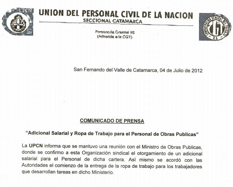 En un comunicado de prensa que leva las firmas de Claudia Espeche y Ramón Alvarez, la UPCN agregó que, también, “se acordó con las autoridades el comienzo de la entrega de ropa de trabajo para los trabajadores que realizan tareas en dicho ministerio”.