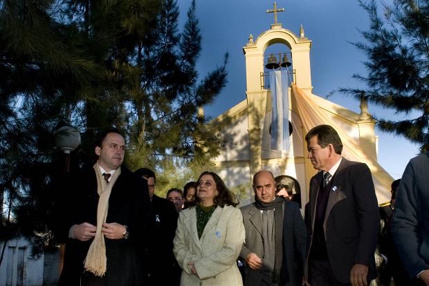 Luego del izamiento del Pabellón nacional en el mástil de la plaza “Manuel Belgrano”, Corpacci y su comitiva asistieron al Solemne Tedeum en la iglesia Nuestra Señora del Rosario, para posteriormente compartir un chocolate con los niños de la Escuela Nº 292.