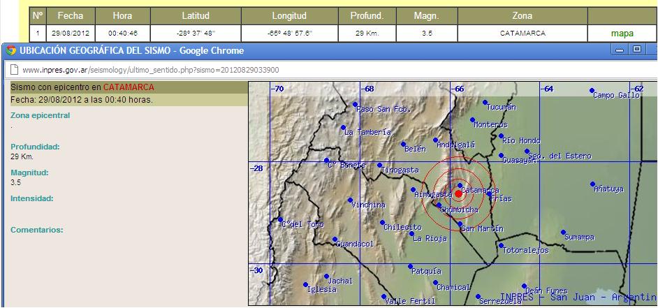 El epicentro se ubicó a 20 en dirección sur-suroeste de la ciudad de San Fernando del Valle de Catamarca..