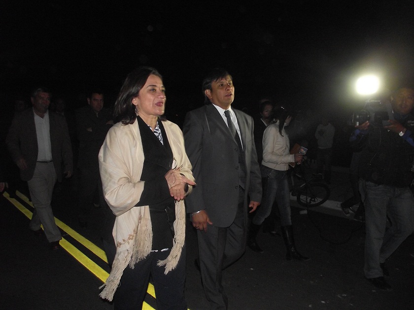 En una noche fría pero emotiva, la mandataria estuvo acompañada por el intendente comunal, Jorge Andersch, el ministro de Gobierno Francisco Gordillo; el ministro de Servicios Públicos, Julio Molina y la ministro de Educación, María Julia Acosta, además de legisladores y gabinete municipal.