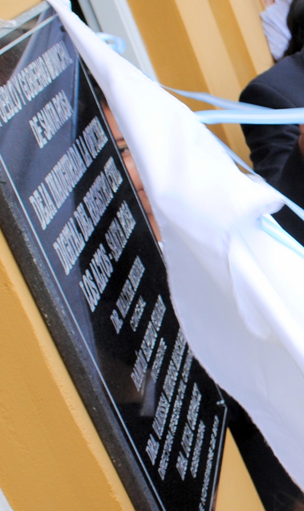 Para ello, entabló una pertinaz disputa con el intendente de Los Altos, Rafael Olveira, al que fustiga en cuanta circunstancia se plantea, incluso comprometiendo a la propia gobernadora, Lucía Corpacci como lo hizo en una reciente visita de la mandataria a aquel departamento. Fue en ocasión de la habilitación de la oficina digital del Registro Civil de Los Altos, instalada fuera de la sede municipal, e inaugurada con una importante y sugestiva placa, en mármol negro, en la que figuran todas las autoridades, menos el nombre del jefe comunal local, Olveira. Encabezada con la dedicatoria del “Pueblo y Gobierno Municipal de Santa Rosa”, fueron incluidos el concejal del PJ en Los Altos, la directora del Registro Civil Dra. Vanessa Burgos Mascareño, la gobernadora Corpacci y como intendente “Ramón Elpidio Guaraz”.