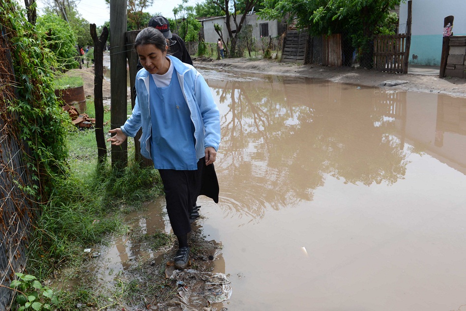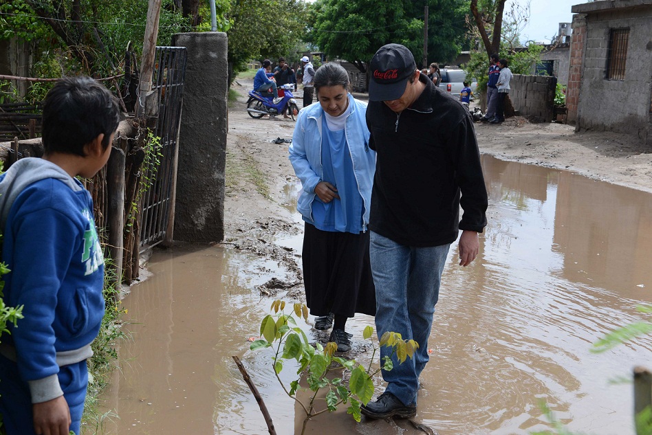 Uno de los sectores más afectados fue el sur capitalino, donde Lucía visitó casa por casa en las cuadras más castigadas, y dialogó con la Hermana Jimena, quien le detalló las inquietudes de los vecinos.