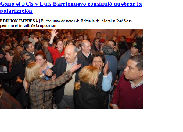 Para justificar su torcida interpretación el diario de Zitelli publicó aquel día que “la línea Alternativa Progresista que dirige el diputado provincial José “Chichí” Sosa logró 5.782 votos (7,63%), un caudal de adhesiones superior al que esperaba la fuerza y que permitió el triunfo del sello del FCS sobre el oficialismo. Ahora, el sector es clave para el FCS”. Un detalle que ahora oculta, sin siquiera a animarse a pronosticar un eventual direccionamiento de aquellos “clave” casi 6 mil votos “sosistas”, descartados por Brizuela del Moral y Oscar Castillo en el armado de las listas del FCS para el 27 de este mes.