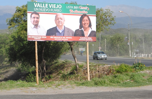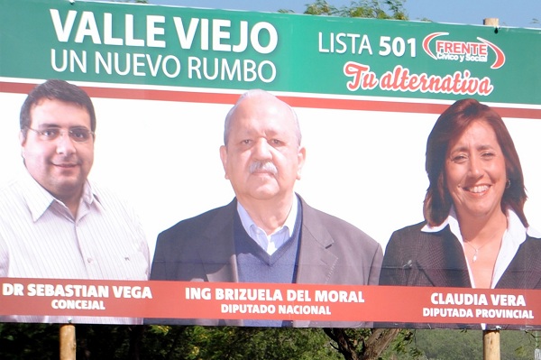 Lo que ocurrió es que, votándose tres categorías: a diputado nacional, a diputado provincial y a concejal, quedaba flojo presentar la oferta electoral del FCyS en Valle Viejo sin un aspirante a la Legislatura Provincial, como se había hecho en otros dos afiches de campaña, en la esquina del Súper Beracca y la rotonda de Sumalao. En los mismos, únicamente aparecen el ex gobernador Eduardo Brizuela del Moral, candidato a diputado nacional, y el Dr. Sebastián Vega, candidato a concejal.