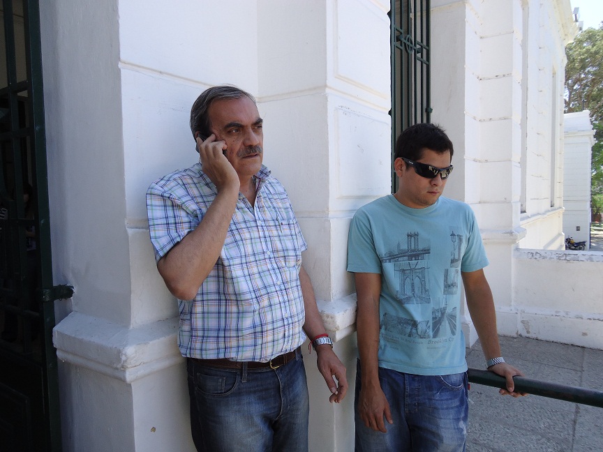 Ahí Aredes estuvo en la vereda, para asegurarse de que todos los que ingresaran lo vieran. Estuvo acompañado por el secretario de Coordinación Carlos Rosales y otros funcionarios de menor jerarquía, que coparon el hall de ingreso a la sede universitaria.