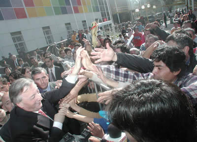 Ese día, el ex presidente y entonces titular del PJ, Néstor Kirchner, defendió su participación en la campaña electoral en nuestra provincia (fue en el acto en el que la actual gobernadora, Lucia Corpacci pronunció la célebre suplica: “…suba compañero Ramón, suba…”). Y en esa defensa Kirchner, inmortalizaría en una frase su pelea con el grupo Clarín.
