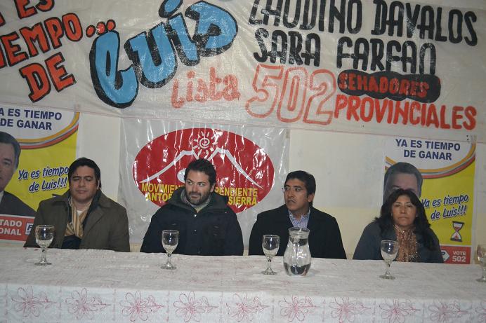 Por su parte, desde Antofagasta de la Sierra, Laudino Avalos, candidato a senador por este departamento, dejó inaugurada la sede local mientras, en el mismo acto, realizó el lanzamiento de campaña. El joven candidato que se unió no hace mucho tiempo al Frente Tercera Posición posee además de un importante conocimiento político, una sensibilidad amplia respecto a los temas que aquejan al departamento que pretende representar en el Senado.
