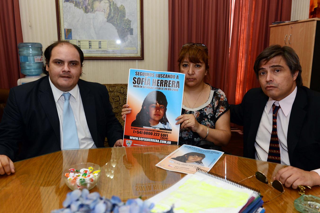 Asimismo, durante su visita María Elena informó que se abrió una línea telefónica gratuita (+54) 0800-222-7634 para quien pueda aportar información sobre el paradero de Sofía y la dirección Web www.sofiaherrera.com.ar También se puede aportar datos a los siguientes e-mails:[email protected] o [email protected] o al tel (02964) 15603920.