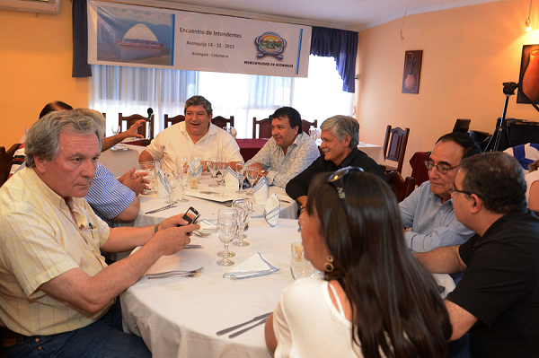 Tras la recepción de los intendentes y demás autoridades visitantes, en distintas mesas de trabajo se llevan a cabo reuniones donde está siendo analizada la problemática provincial y se elaboran los contenidos preliminares del acta final, cuya lectura se hará en el cierre del encuentro alrededor de las 18 de hoy. Al mediodía se realzó un almuerzo, durante el cual el intendente Espinosa tuvo a su cargo las palabras de bienvenida. A las 14.30 está prevista la continuidad del encuentro de intendentes y funcionarios provinciales que concluirá con la divulgación de un pronunciamiento conjunto.